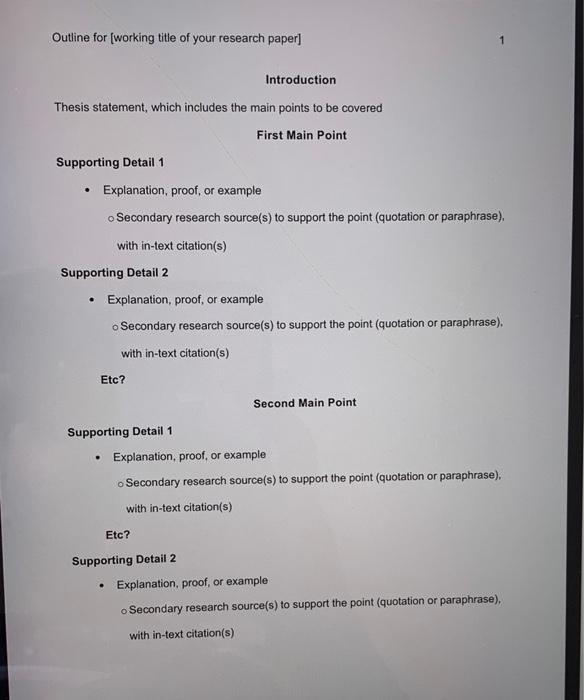 Outline For Working Title Of Your Research Paper 1 Chegg Com